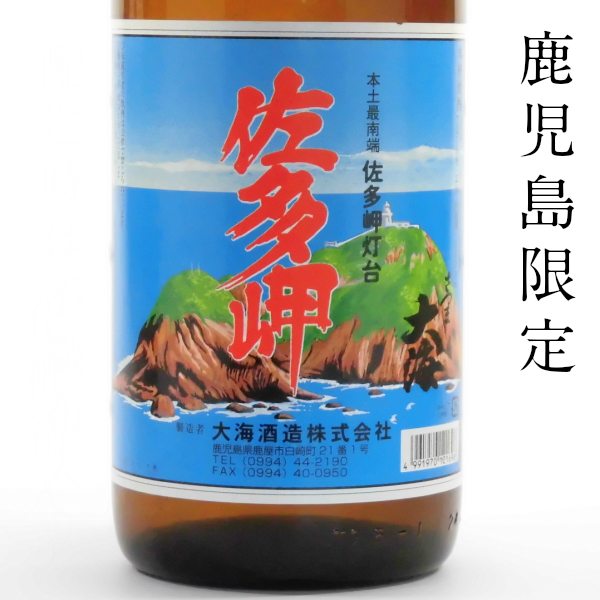 佐多岬 1800ml 芋焼酎 鹿児島限定 大海酒造佐多岬 (さたみさき) 大海酒造が造る鹿児島限定販売の芋焼酎です。ラベルは本土最南端の岬 佐多岬のイラストです。レトロな見た目が何とも言えないです。飲み口はあっさりしていて飲み飽きしないオーソドックスな芋焼酎です。万人受けする味わいで、お土産等にもピッタリな1本です。
