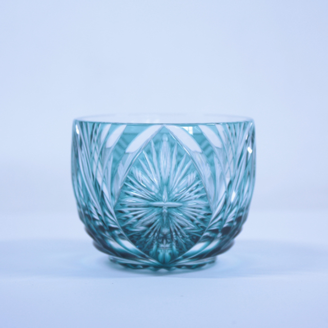 見る角度、方面によって違った印象を与えてくれる、他の切子とは違うデザインになっております。
