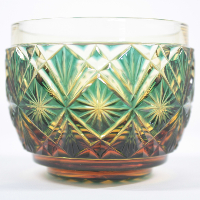 【薩摩切子】 猪口 [緑アンバー] クリスタルガラス製 鹿児島 MIRIYU工房 おちょこ